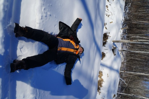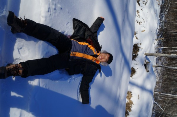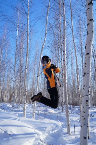 为了拍一张上树的照片,小刘师傅竟然坑我们,说我们下车他就跑。谁知道还真的跑,无奈我们追不上就只能接着在雪地里自娱自乐了