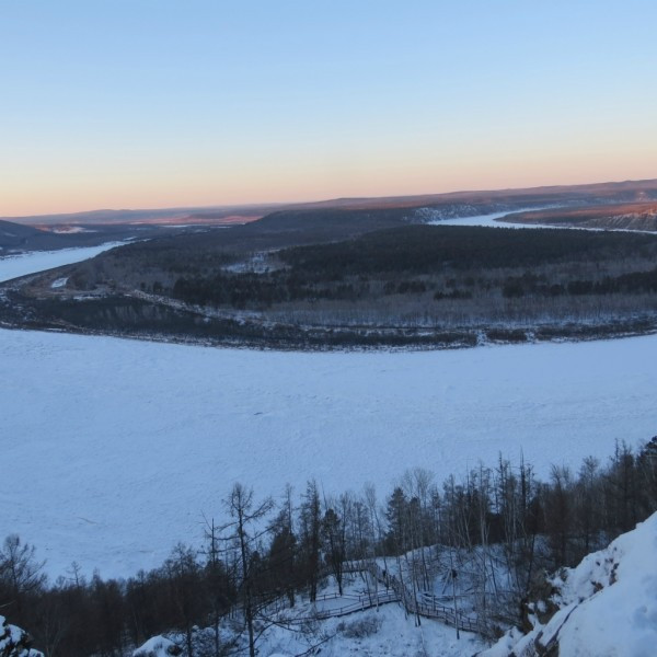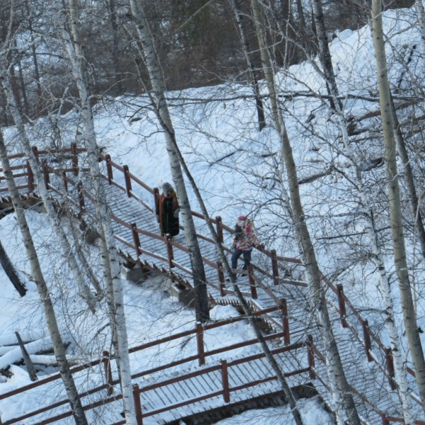 接下来就是饱餐一顿了,饿得不行了。原谅我在手机冻关机相机怕哈气受潮的情况下没照照片。一顿饱餐后驱车前往今天的最后一个景点——龙江第一湾(得爬九百多级台阶,所以,别穿太厚了,不冷就行,否则,你肯定会后悔的)