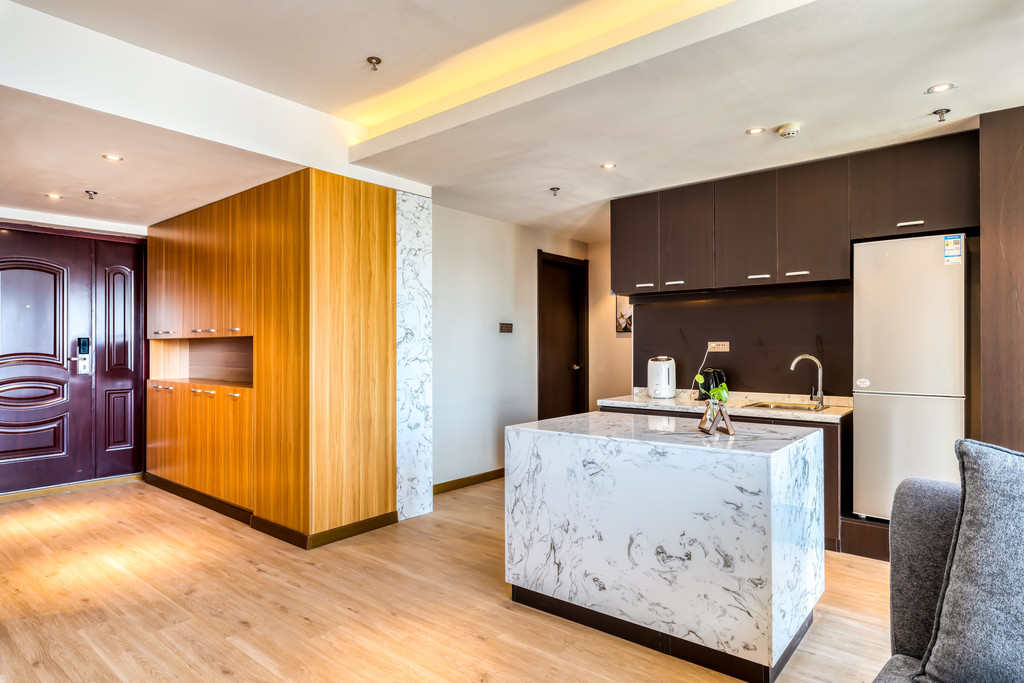 这家酒店是可以自己做饭的套房内备有一系列的厨具,其实家里长辈可挑剔了,觉得外面的饭总是没自己做的好吃,这个配置就正好合我们意。而且这边购买菜品也特别方便。当然,疫情期间出行的话,其实自己做饭也是比较好的。