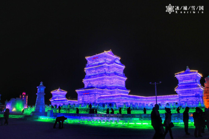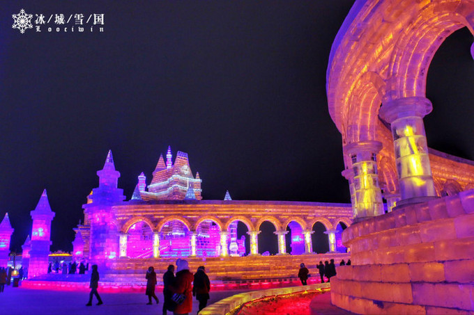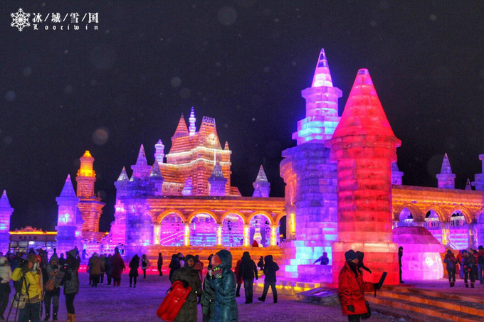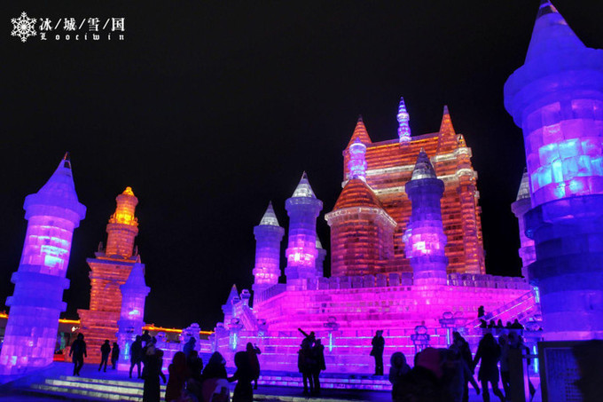饮食在里面饮食的话就不用担心,会有一个专门吃饭休息的地区,里面有暖气,如果觉得冷的话可以进去休息。里面吃的选择还是比较多的,肯德基,吉野家,东方饺子王,太平洋咖啡。本届冰雪大世界的标志,类似于城堡的彩色塔,有点像伊斯兰教的清真寺。亮了灯的冰雪大世界如童话一般,五颜六色的冰雕让整个冰雪大世界充满了活力。而此时此刻,天空中又飘起了雪花,仿佛世界只有我一个人,看着飘落在肩上的雪花,却任由它不愿轻易拍走。本届冰雪大世界有很多都是城堡样式的建筑,给游人置身童话的感觉。除了外国的城堡风格以外,还有中国古色古香的亭台楼阁,每一层都做得相当得细致。在冰雪大世界的尽头有个楼梯可以上小山坡看冰雪大世界的全景。