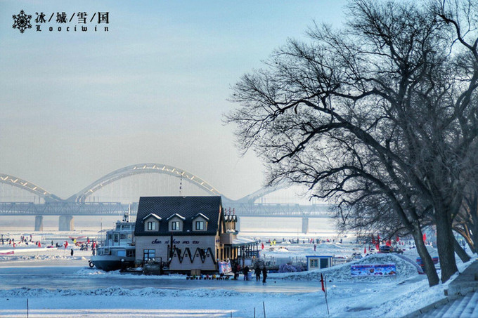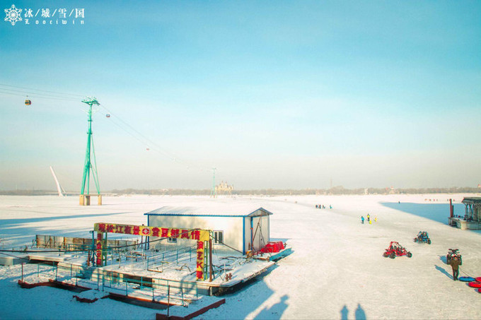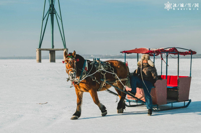 不知你向何方—李健《松花江》李健的《松花江》歌颂的是夏天的松花江,而此时此刻在我面前的是冬天冰封了的松花江,第一次走在冰封的江水上,一开始还小心翼翼,后来发现松花江的冰结得可厚了,怎么跳怎么跑都随便。松花江索道南起道里区通江广场(通江街218号),坐落于美丽的松花江畔,横跨于松花江上,北至太阳岛风景区中心地界(风景街18号)。一开始我的原计划是坐索道过对面太阳岛的,后来看到票价果断不买,横过松花江。单程短短的距离就要50块,不如走松花江还来得划算松花江上有许多狗拉爬犁的,收费不便宜,个人还是觉得不要参与了,狗那么小只还要拉上这么大个人,真的很可怜。马夫拉车,除了这些活动还有摩托拉着滑雪,收费也是不便宜的,毕竟大冷天出来做生意不容易。第一次走在结冰江面上的我异常兴奋,又跑又跳。从这里走到对面的太阳岛其实会很冷,因为整条江面上都通风,没有任何建筑物遮挡,所以风特别大,特别是走到中间的时候,我拿出手机没多久就因为太冷手机速速没电自动关机,整只手僵得好像不会动都不是自己的手一样,耳朵还怕冻得掉下来,现在回想起来觉得特别好笑。太阳岛雪博会哈尔滨,一个与雪相伴、相生、相长的城市,雪为哈尔滨冬披上了灵秀的外衣,而哈尔滨也把冬季的太阳岛圣地给了雪,相依相偎中我们演绎着雪的世界与梦想。