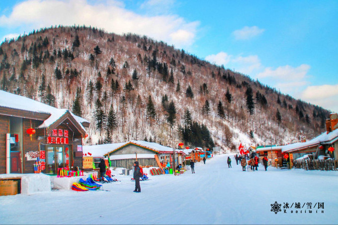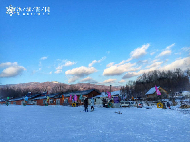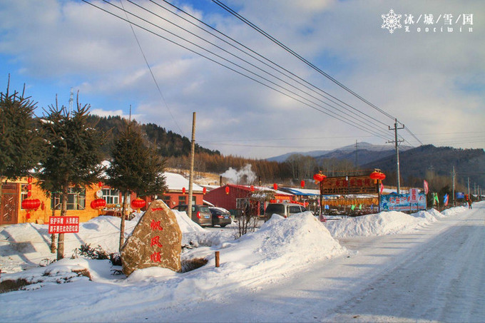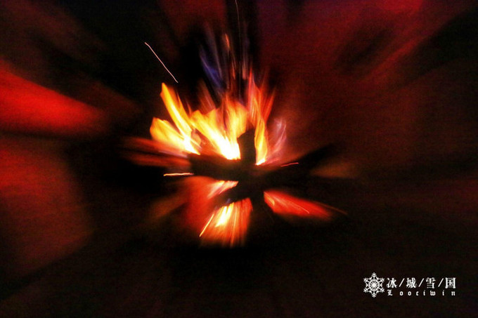 这里的雪更深更厚,因为人少,所以积雪厚也不会清理,你可以随意躺在雪地里打滚,在积雪留下自己的脚印。如果你想打雪仗,这里的雪足够你玩得开心,你追着阳光跑一头栽在了雪堆里。一开始以为雪谷没什么娱乐项目,后来客栈的老板娘把我们领到附近一个小型度假村。娱乐项目有几种,滑雪,冰爬犁,滑雪圈。80块钱可以任你玩,没有时间限制。没有去亚布力滑雪场让我心中有点失落,但是听到这里可以滑雪我早已迫不及待。虽然这里的滑雪场不大,但是对于一个初学者来说很适合,人也不多。为什么我说雪谷的乡村气氛更好呢,因为这里有篝火晚会,每个来到雪谷里的人都会被这里热闹的气氛感染。