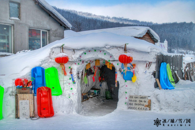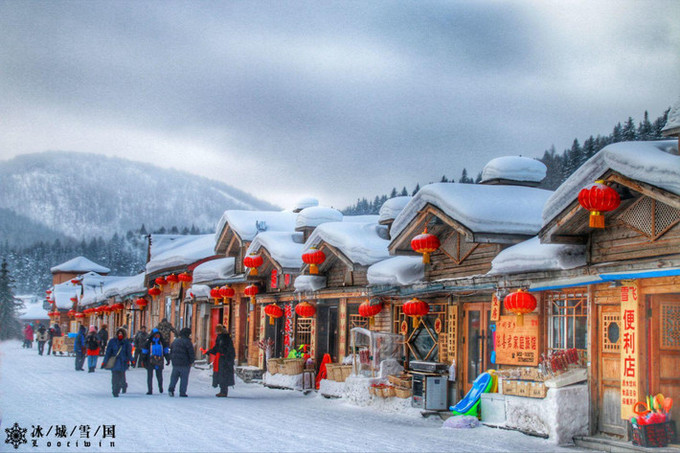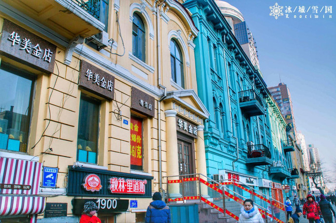 另外雪乡有自己的滑雪场,如果想体验滑雪的乐趣可以到雪乡滑雪场,另外还有冰爬犁,但是价格肯定是比较贵的。厚重的雪搭在了松树上面,在我们呆在雪乡的最后一天,给我们来了一场小雪,密密麻麻不停地下了起来,雪啊雪啊,你可真美。当雪花轻轻飘落在我的脸上,嘴唇上,它就像情人轻轻地亲吻我。北面的房子外面没有摆放一些商品买卖,给人感觉更加淳朴一些,因为这边不是中心区域,所以来的人就少了。这个店可厉害了,是从一个大的雪堆里面挖出来。以前不知道以为所有雪都是很松软的,去到以后才知道雪有松软的雪也有硬硬的雪,这家商店就是在硬雪的基础上打造出来的。北面也有一些雪蘑菇的景象,只是没有梦幻家园造型那么好,但是看得出来这样的雪景是客栈人家精心打造的。前方有个大大的雪蘑菇。雪蘑菇与小雪搭配出纯净无人打扰的画面我用手遮住眼睛,不愿这一切雪景消失在眼前,马上就要离开了,心中的不舍越来越重。我想将这里的雪带回家,想将在雪地里发生的一切都收进口袋,这这一切都只是空想罢了,雪永远都带不走,我只能祈祷有一天我能够再回来,看看那纯洁无暇的雪。这几天我像个疯子一样疯狂地在雪地里肆无忌惮地奔跑,我只记得自己来过北方看过雪离开雪乡的路上看到了美美的雾凇,阳光没出来雾凇就特别明显。这次有点遗憾的是没有去雾凇岛,但是这一路也没少见雾凇,只能将遗憾留到下次实现。细细地看着雾凇,好像白色的小绒毛粘在了枝头上面,还带有细碎的尖尖状。老道外回到了哈尔滨已经将近七点了,肚子已经饿得不行,赶紧找地方解决,早就听说老道外的美食很出名不妨尝一尝。在今天博物馆广场望去东大直街上已高楼林立,但无论这些现代化建筑色彩多么耀目,体量如何庞大,都无法掩盖秋林公司儒雅端庄的丰姿――在一片白色墙面,蓝色、绿色反射玻璃的包围之下,秋林公司深沉的暗绿色调同样宜人且醒目;在一片冷漠的现代建筑围攻中,秋林公司以其优雅的装饰、精美的穹顶造型杰然不同秋林公司附近的建筑都很有俄国特色,都是受保护的建筑群,走在街上还有洋风之感。现在这些建筑楼下已经当作商铺使用,一方面达到了楼房的保护,另一方面又提高了它的使用价值。哈尔滨防洪纪念塔坐落在风景如画的松花江南岸,哈尔滨市道里区江岸,中央大街终点广场。是为纪念哈尔滨市人民战胜1957年的特大洪水,于1958年建成的,是这座英雄城市的象征