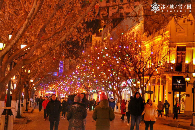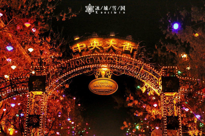 但是听哈尔滨当地人说路边卖的烤红肠都不是正宗的,如果是解嘴边倒是可以试试中央大街的夜晚在灯光的映衬下显得格外漂亮,彩灯挂在了树枝上,显得整个场景有点梦幻。