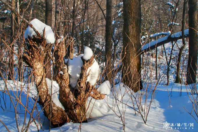 因为很多人都选择了穿越这条线路,不用担心周围没人照应。冰柱结冰了,对比起雪来说,冰柱的颜色稍微黄了一点。一大块雪堆在了树枝上,无人沾污无人踏足的雪地,时间就如同静止了一般远处的吆喝声,一看原来是马拉爬犁,这马一天不知道得拉多少客人。