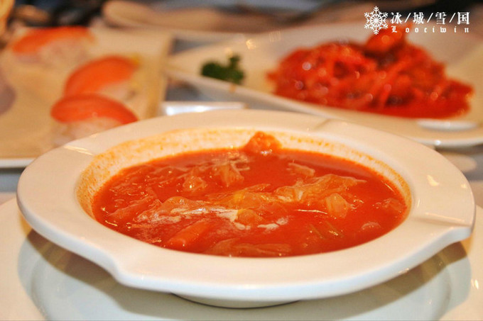哈尔滨因为天气冷,天黑黑得早一般晚上八点多街上就没有什么人了,但是唯有中央大街还能一直热闹到晚上十点多,可见它多么有魅力。波特曼西餐厅在中央大街逛街的时候问了服装店的店员,哪一家俄式西餐厅味道比较好和正宗,他介绍波特曼餐厅给我们。其实在来之前我也有一定的了解说梅西餐厅比较受欢迎,当我们去到的时候,也许是它太受外地人的欢迎还要拿号排队,拿号的时候还说一个小时后再回来。见此状,我到波特曼餐厅一探究竟对比到底哪一家更好。梅西餐厅也许开得比较久了,装修还有桌椅看上去比较旧,加上室内的灯光较暗,给人感觉不是情调而是不舒服。相比之下,波特曼的感觉很复古而且装修都很有情调,最重要的是你在享用美食的时候还可以观看外国人的风情表演。一进入门口就会有一些复古的饰品,一看就觉得很喜欢,这也是留住我的原因之一。红菜汤酱鱼松花江美丽的地方