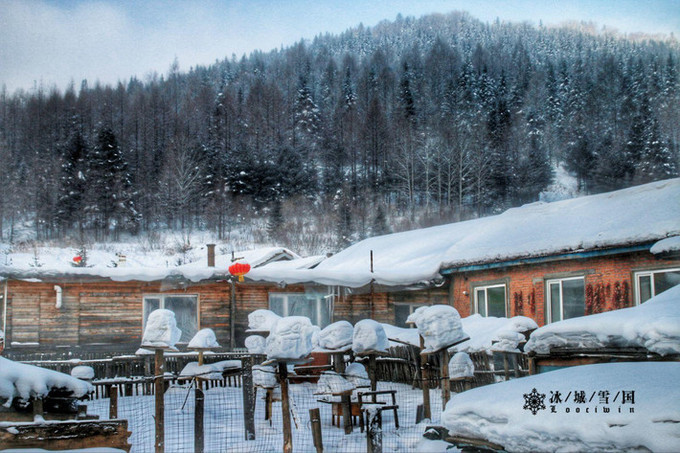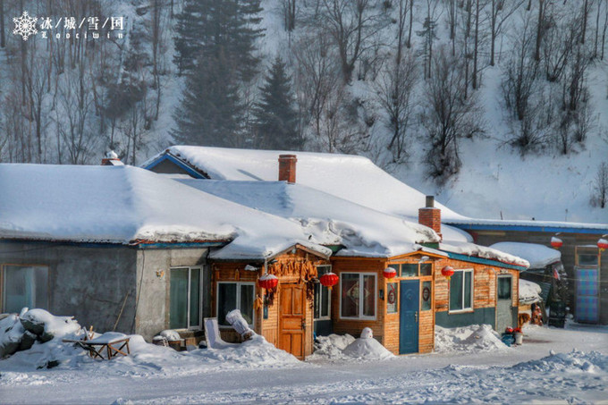 这是雪乡的特色,厚重的雪压在了屋顶上,形成了好看的形状。对比雪谷,雪乡的最大特色就是房子,所以也有一种说法,雪谷看雪雪乡看屋。这个雪谷的牌坊更加大一点,上面还挂满了喜气洋洋的红灯笼梦幻家园是一个集住宿、餐饮、娱乐、二人转、雪上娱乐与一体的庄园,占据了雪韵大街的黄金地段,地盘极大,院子里几乎涵盖了雪的各种造型,因最初是剧组拍戏留下的,布景比普通农家院落更精致些,还有水井、小桥等点睛之笔,能拍出些好照片。沿木栈道爬上半山腰的观景台,可以俯拍庄园和雪乡的全景。