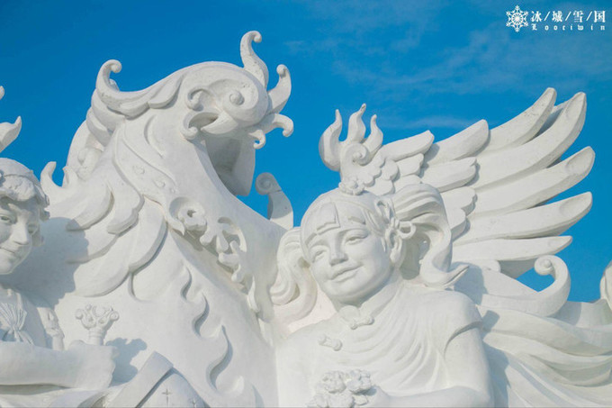 在广州这个不容易下雪的城市里,多多少少也会举办过冰雕的展览,但是那些规模小之又小,还被关在一个小空间内。这次来到冰雪大世界真的让我大开眼界,冰雕的规模很大,而且还是在室外纯天然的环境下,南方人表示不出内心有多兴奋。