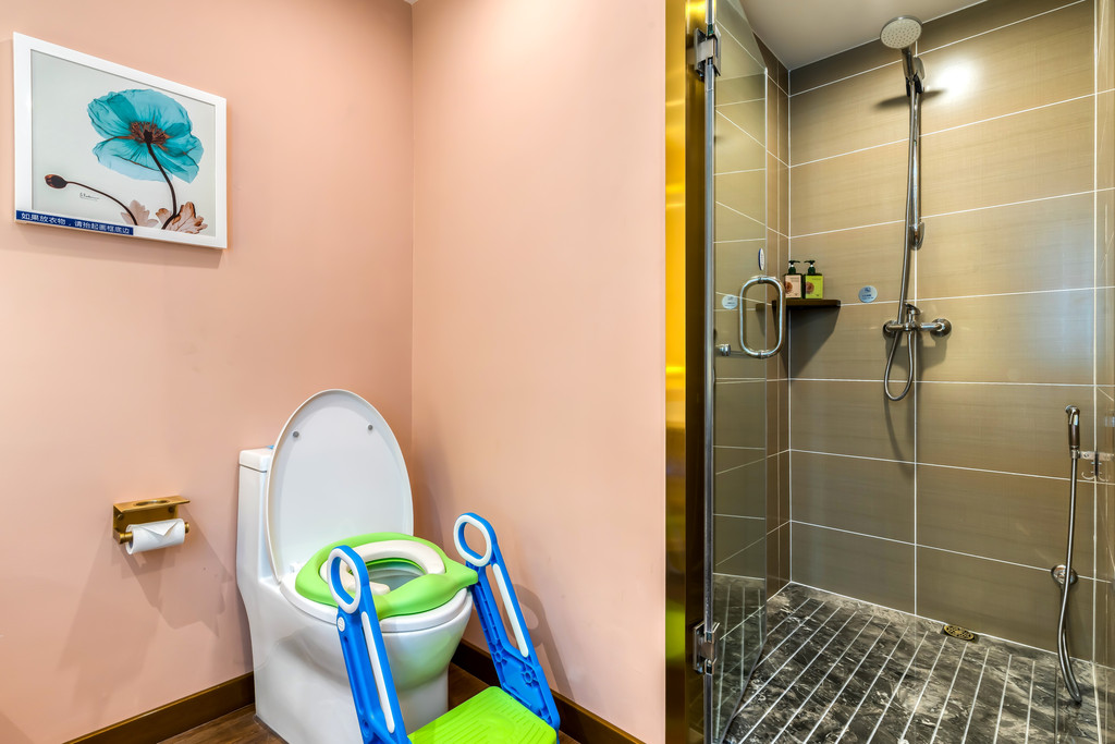 另外卫生间还有儿童设施,整体来说真的很方便。再就是这家酒店每个房间都有一个超大的落地窗,还可以看到哈尔滨的夜景。