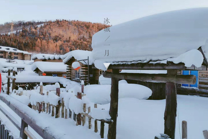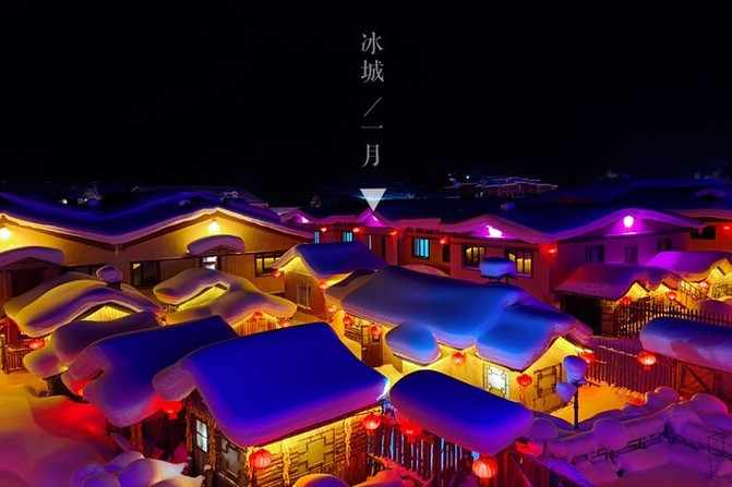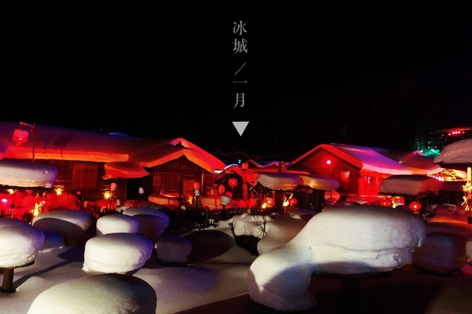 中国雪乡厚重的白色堆积在小木屋的房顶上,在大红灯笼的映衬下,甜蜜又冰凉,所有的触觉里都泛着暖黄色的温柔。