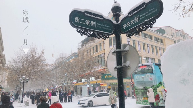 中央大街连路边的路牌指示都铺满了积雪~太难得一见啦