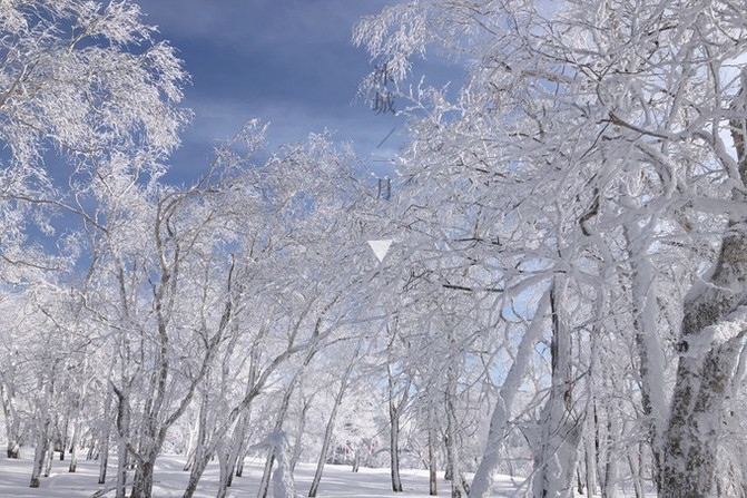 雪乡十里冰雪画廊处处可见结满洁白的树挂,小小的一颗真可爱。