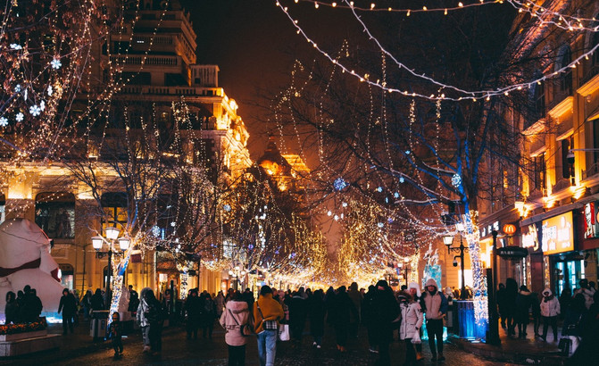 冬季的中央大街,越晚越热闹,叫卖马迭尔冰淇淋的声音,空气中弥漫着的烤红肠香味,还有,不解冻能嗑掉牙的冰糖葫芦。