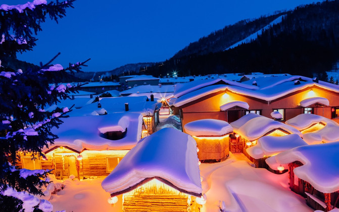 夜间亮灯后的 雪乡 ,更加梦幻令人难忘。