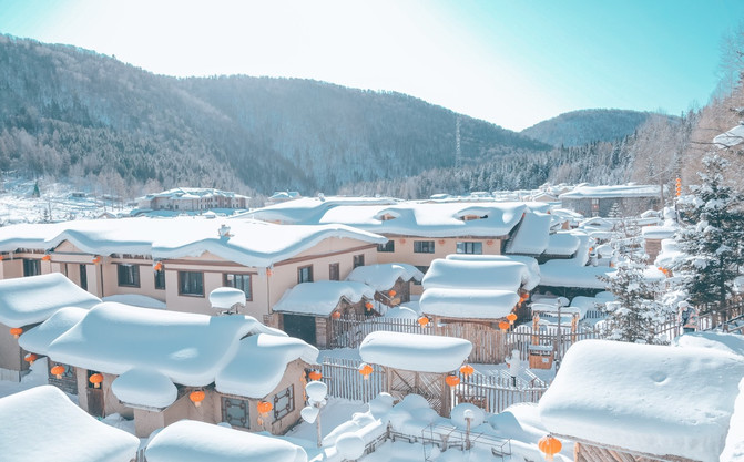 雪乡 位于林区,地处 “龙江三巨擘”首峰老秃顶子山下,所以周遭均是山脉。