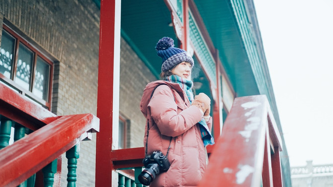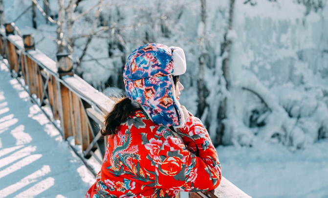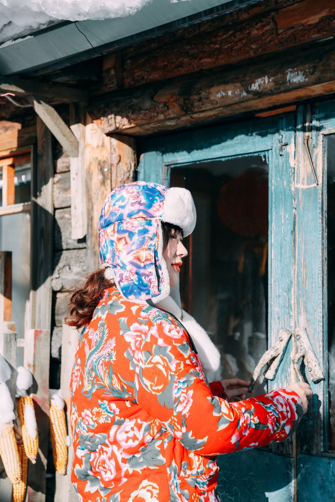 穿上民宿提供的大花棉袄, 东北 的冬天竟是一点也不冷了。