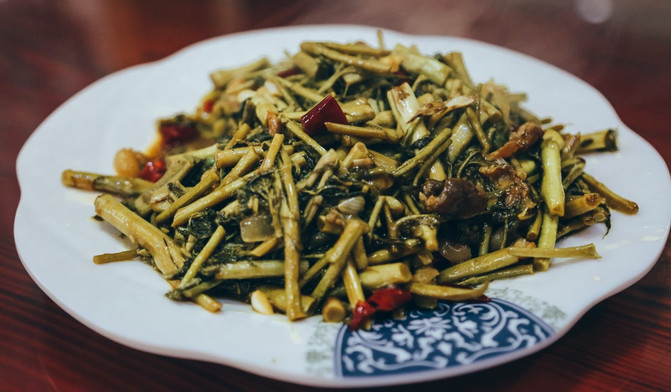 这是这里特色的山野菜,冬天难得能一见的绿色蔬菜呢。