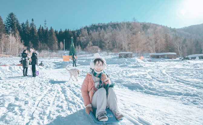 客栈里提供的爬犁,这里专门划出的雪道,找好位置坐好后,借力顺势而下,感受速度和风的力量。