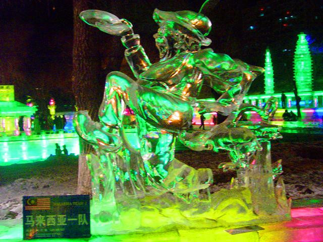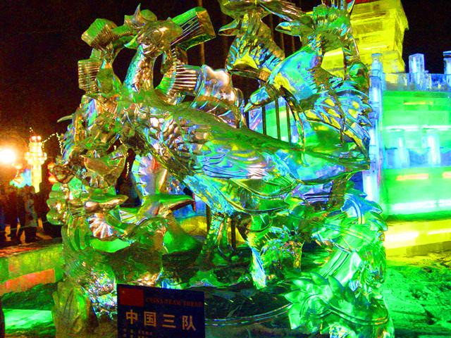 广义而言,哈尔滨的冰灯主要是指冰雪为材料的造型艺术,是冰雪艺术造型和灯光效果的总称。它包括冰雕、雪雕、冰建筑、冰雪造型、冰花等众多艺术种类,艺术手法丰富多样。其中,冰雕最为常见,与传统雕塑一样,也分为圆雕、浮雕和透雕等三大类。