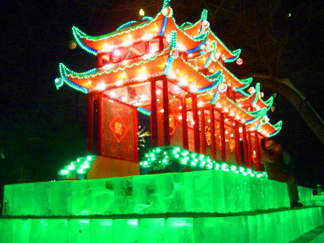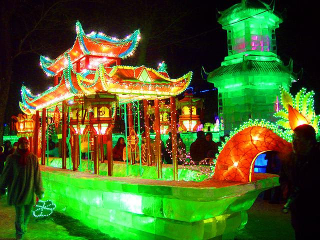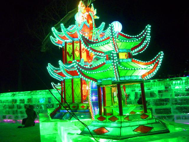 后来,人们在新春佳节和上元之夜也制做冰灯摆在门前,或烫孔穿绳让孩子提着玩,用以增加节日气氛。