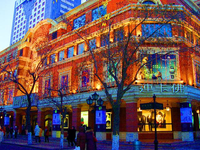 中央大街带有欧陆风味的古旧建筑,在这里依然保存完好,在晚灯的烘托底下,漫步街上令人感到几许的浪漫。由于已是冰雕季节,街道两旁添置不少小型的冰雕作品,使人在前往冰雪大世界的途中,先给自己的一双眼睛热一热身。