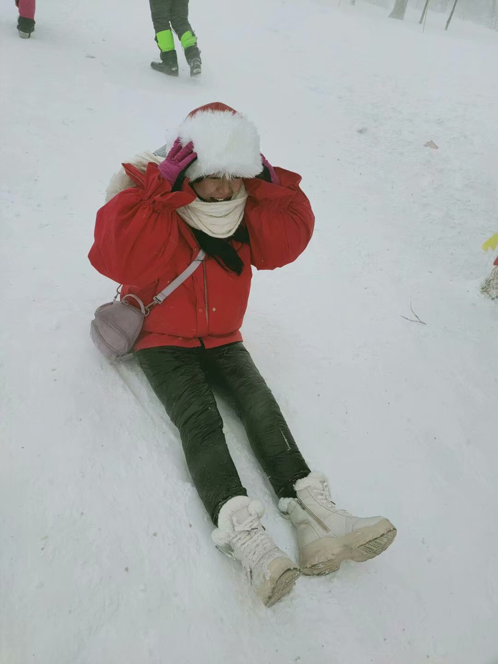 大滑道下来就由旅行社安排到了农家吃大锅饭团餐,在东北这种一锅乱炖、什么佐料也没有,既没味儿也没样儿的团餐也算是难吃至极,建议去东北跟团的小伙伴最好自备麻辣酱或者榨菜,不然吃惯了麻辣鲜香的人来了只能跟我一样每天食不知味,当做减肥了。等菜的过程中跟雪来个面对面接触,一进雪地里,中年小姐姐也会秒变魔怔玩雪狂人,根本顾不上冷了,玩了再说。疯玩完毕,因为下午还有重头戏,滑雪是非常耗费体力的,只能勉强吃点填饱肚子直奔滑雪场去。亚布力滑雪场应该是国内最专业最大的滑雪圣地了,每年都会组织数场专业滑雪比赛,遍布山体的各级滑雪道让人眼花缭乱,途中遇到专业运动员都是带着雪板坐缆车到山顶再一路滑下去,像我这种菜鸟只能默默在心底膜拜了。进了滑雪场,导游会指引大家排队领取滑雪装备,所有的装备器械都是团费里包含的,但请滑雪教练是自费,240元两小时,可以带你进入中级滑道体验快速滑雪的快感。没有教练的只能进入初级滑道,鉴于我在武当滑雪场摔的四脚朝天的教训,果断请上教练,两个小时下来,体力基本耗尽,完全累趴,事实证明,滑雪这项运动还是不适合我,天资太笨,始终保持不了平衡,还是雪地里躺躺,摆摆造型装装样子算啦!