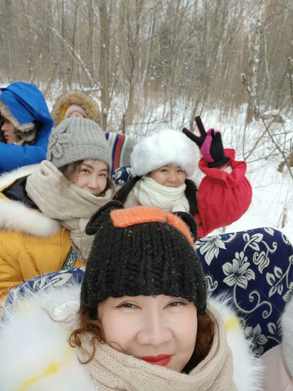 睡了个踏实温暖的舒服觉醒来,漫天飞舞的大雪瞬间把世界染白了,开心的奔入雪地里,各种狂拍。臭美完毕,吃罢早餐,继续坐上大巴前往下一个景点观看冬捕讲解,东北渔民开网捕鱼,预示着年年有余,千里冰封的湖面上,由渔民凿开个冰窟窿,收获起沉甸甸的大鱼与喜悦。我们去的时候没有捕鱼,长长的网笼里捕到的全是林蛙,据说这种蛙就是我们常吃的木瓜炖雪蛤里面雪蛤的主体,而雪蛤竟然是母蛙的输卵管,顿时胃部翻起阵阵不适,我一直以为雪蛤是植物,不曾想竟是这种小动物用来孕育生命繁衍后代的器官,不禁感慨人类的残忍,呼吁大家以后还是多吃素少杀戮吧!