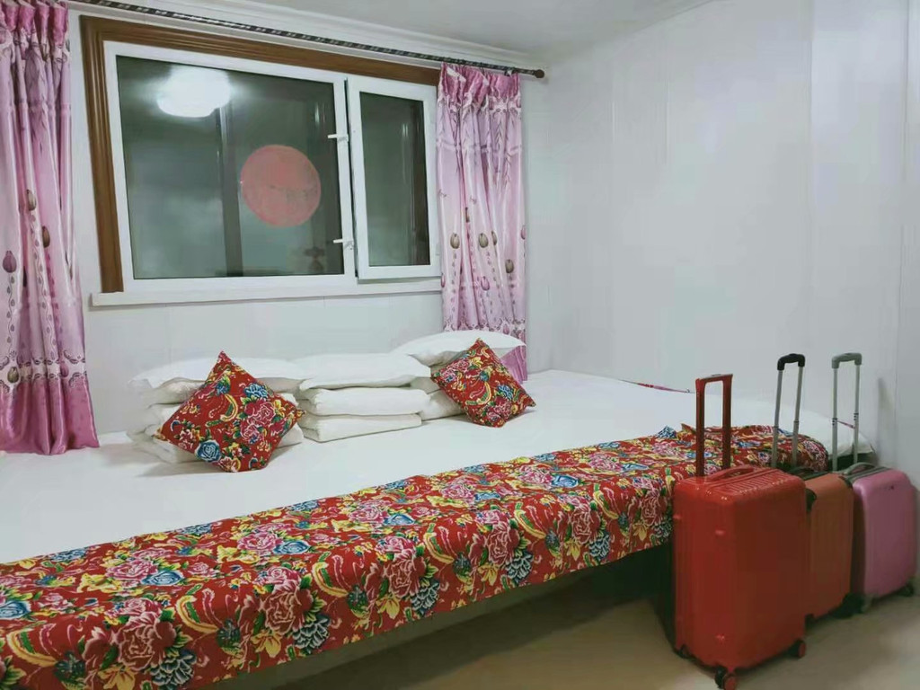 下午的大滑道和滑雪项目玩罢,体验完极速滑行的乐趣后,还有一些雪地游乐项目基本已经没有体力玩了,坐上大巴车一路昏睡到了旅行社安排的东北民宿,三人一间大炕房,虽空间不大,但也算干净整洁舒适,这边沿途的村庄居住和饮食环境有限,多以农家民宿为主,第一次住这样的通铺,感受着东北的滋味,凑巴凑巴也是不错的。安顿下来以后才发现,明明才下午四点多,天已经完全黑了,休息片刻,又吃了顿无法言语的团餐后,前往亚布力森林温泉体验冰火两重天的雪地温泉,温泉分为室内区和室外区,我们果断直奔室外,白雪皑皑+热气腾腾的感觉简直难以言表,汤池边厚厚的一层冰,皮肤挨上去那叫一个冰爽!泡在水里,白天的疲累顿时缓解了许多,室外体验完进到室内,来根马迭尔冰棍也是极爽的,可要命的是第一口就把舌头和嘴唇粘住了,经过小伙伴们手忙脚乱加上不停哈气,才避免了血淋淋的撕掉皮!所以大家一定要记住,去东北,千!万!不!要!马上去吃冰冻的东西,一定要放室内暖暖再吃,不然分分钟把嘴巴粘住!!!绝对比502还坚固!温泉泡罢,第一天充实而又愉悦的行程就结束啦!回去美美的睡一觉,明天继续!