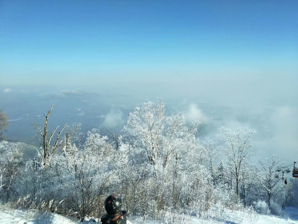 马拉雪犁晃完就可以坐上缆车登上世界第一大滑道的山顶一览雪原的绝佳风景了,这个项目一般旅行社是不安排的,所以好多到亚布力的游客只知道这里有滑雪场,领略不到山顶的风景,我们到的那天天气不算特别好,山下几乎都是白茫茫的一片,但坐缆车上去的时候看到的景致还是不错的,越接近山顶风景越美,上面的气温相对来说比较低一些,湛蓝湛蓝的天空下掩映着白色的树枝,雾凇景观虽然没有达到极致,但是也很美丽~~~到了山顶一人坐一个小滑车,从大滑道飞驰而下,滑行速度可以自己用刹车杆控制,操作非常简单,只要你胆子够大,人少的时候真的是完全可以满足你放飞自我的需求,保证你一路尖叫三分钟到达山脚。此项目推荐,体验感十足。