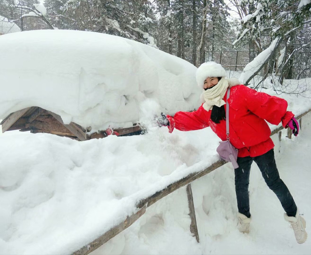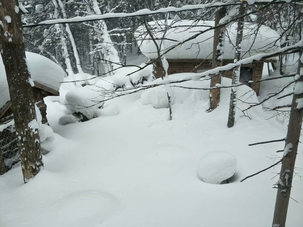 短暂的沮丧之后,我们又找到了更开心的游乐方式,人拉雪橇!在漫天大雪中,在人头攒动的雪韵大街上,在冰天雪地里,我们仨就像完全回到了童年,卯足了劲儿在路上拉着雪橇疯跑,连周围的人都被我们开心的气氛感染,纷纷给我们让道,还有人自发的加入我们,帮忙一起拉着疯跑!不到半个小时,里里外外衣服全部汗湿,那种儿时疯玩的感觉也只有在雪地里才会被释放的淋漓尽致,真的是超级减压啊!疯过玩过笑过闹过以后,走上栈道,从上而下欣赏雪乡的景致,只见家家户户的前门后院里,只要有平面,都会被老天涂抹上一层厚厚的奶油,美到你都有一些不大相信它的真实。从栈道望下去,就像是进入了童话的世界里,无需任何滤镜修饰,随手一拍都是大片,真的无比羡慕这里的雪,人在高处雪在院里,不会被闲杂的人们干扰,哪怕你爱它或者恨它,你也只能这样的看着它,它只用呈现出最美好的样子。脑海里一直呈现着眼前的美好,回到温暖的炕上,渐渐的进入梦乡。