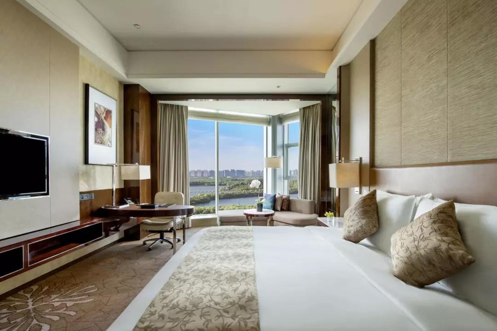 我最喜欢的是客房内巨大的落地玻璃,能将松花江景尽收眼底。在市区溜达一天后,于浴缸内边泡澡边欣赏江景,没有比这更惬意的事情了。