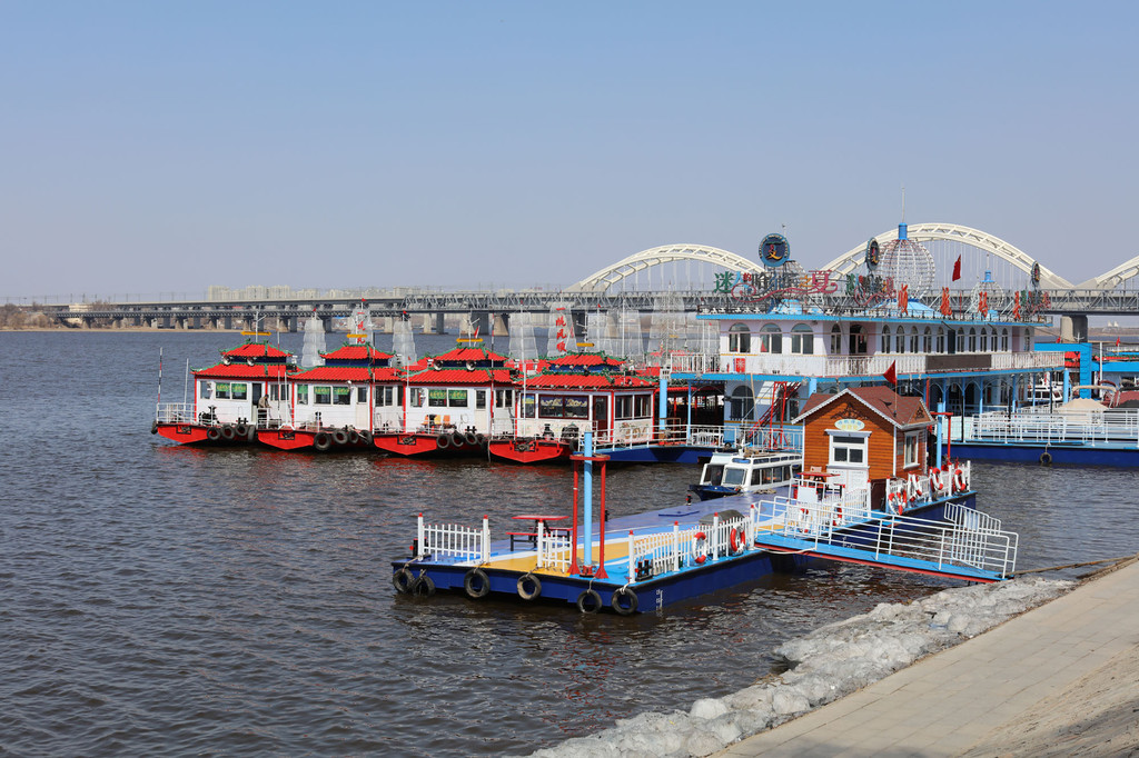 在松花江畔可以买到太阳岛的船票,可以走大桥过去对岸,也有缆车往返市区与太阳岛,每种方式都是观赏松花江的不错选择。我更喜欢从桥上步行前往太阳岛,看着江面波光粼粼,想象着它冬季结冰时的模样,恍如两个世界。