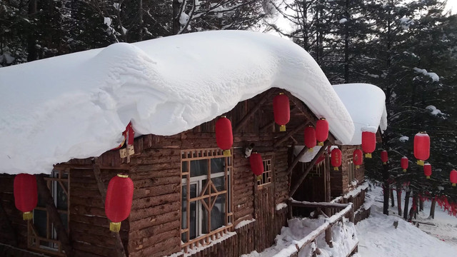 雪乡里的房子基本都是后建的了,盖上厚厚的雪被之后,别有一番特色。