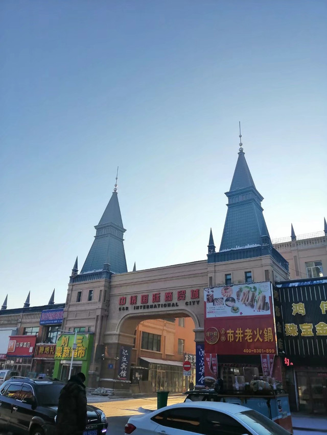 到了漠河县城,天已经完全亮了,小县城的早晨热热闹闹,路边很多赶早市的人。