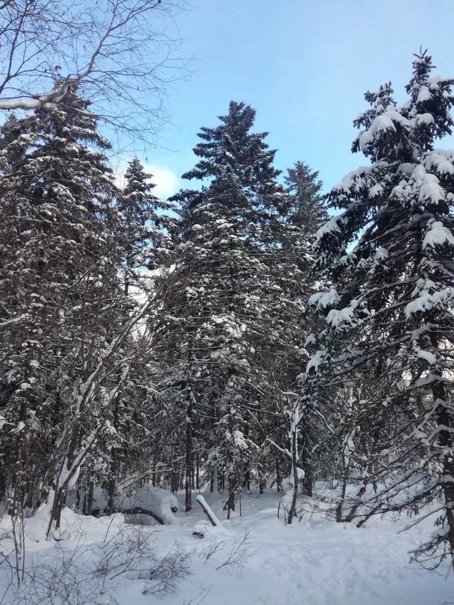 从山顶坐雪地摩托下山,体验在雪林中飞驰的感觉。