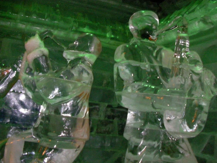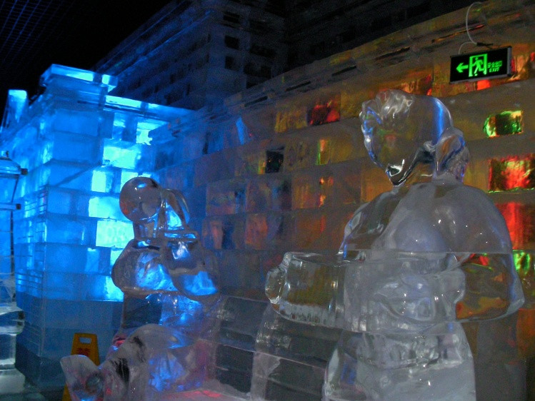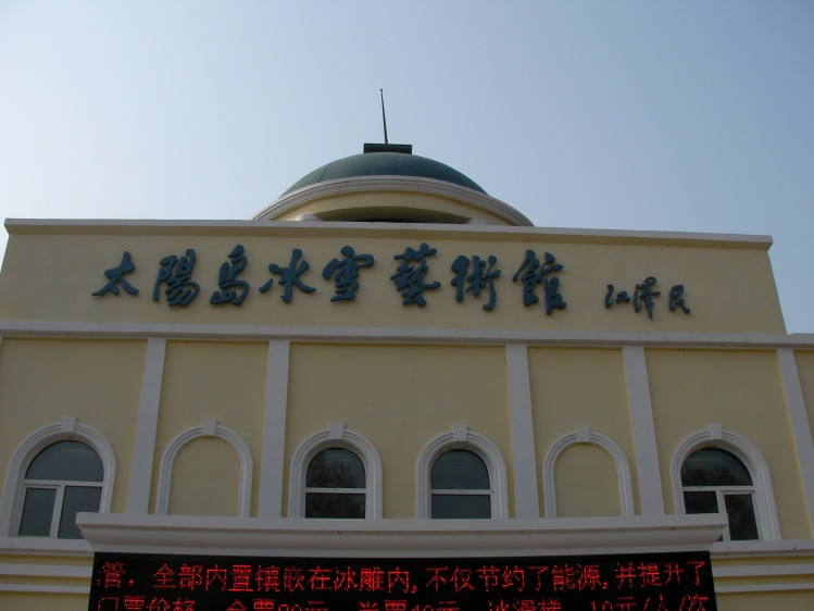 太阳岛最值得一看的是“哈尔滨冰雪艺术馆”,门票80元,因我的现金,只剩10多元,进去以后需要租用大衣和护膝要15元,因不能刷卡,服务人员只收我9元,口袋里留了不足10元以备坐车。现在看当时的服务员还都是非常通情达理的,比较好说话。
