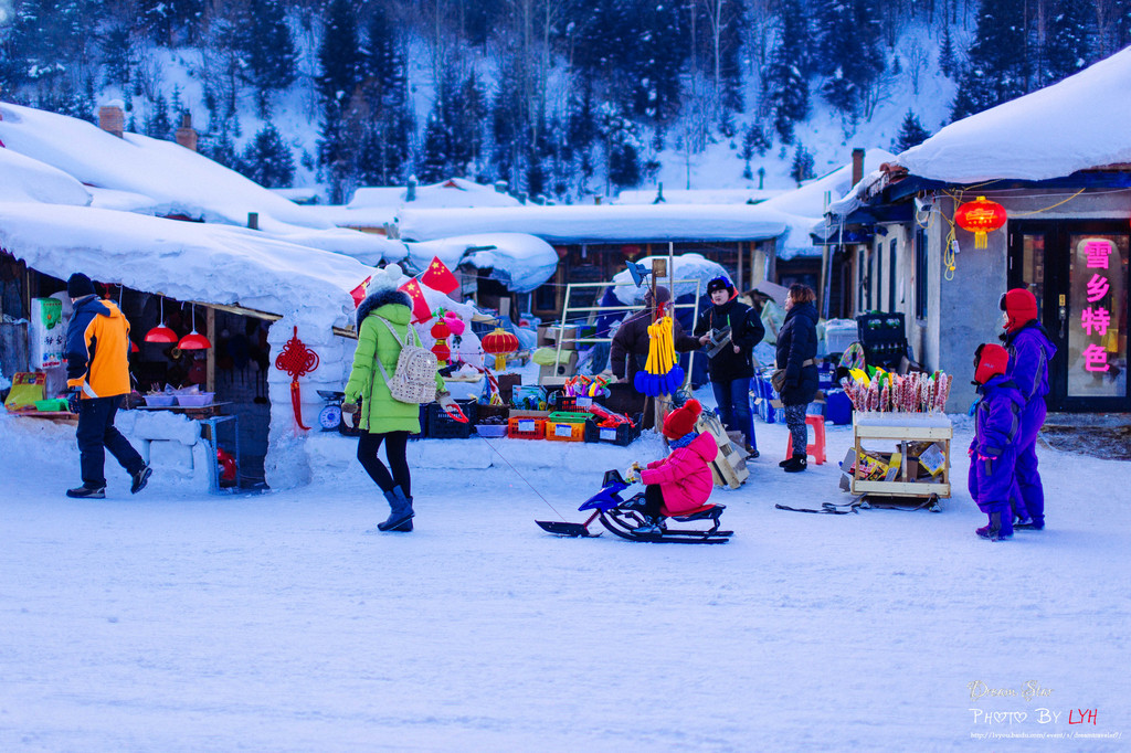一路走走停停,下午一点才到雪乡,已是浓浓的傍晚景象,天不要黑得这么早。