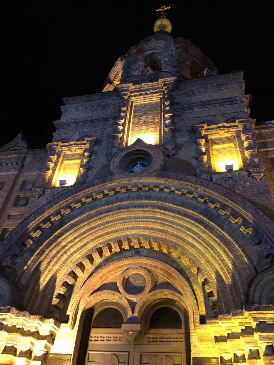 沿着中央大街一路走到圣索菲亚大教堂,步行大约需要20分钟。夜晚的大教堂打上灯光更显得高大和神圣,这座名誉中外的教堂也是哈尔滨旅游的一个名片。