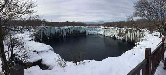 两小时后我们出发长白山北坡景区,天气出奇的好,连带心情大好,想到天气好,就可以一睹长白山天池的真容,十分期待。但是进入景区发现天池还未开放,为确保游人安全,天池的开放并不能顾及游人的心情。且玩且等吧!著名的长白山瀑布,落差65米,外层已经封冻,远看就是一道冰瀑,其实内层还在流动和飞泻,瀑布下面,松花江的正源二道白河,水声轰鸣,波涛翻滚煞是壮观。长白山温泉,热气腾腾,烟雾缭绕,宛若仙界。