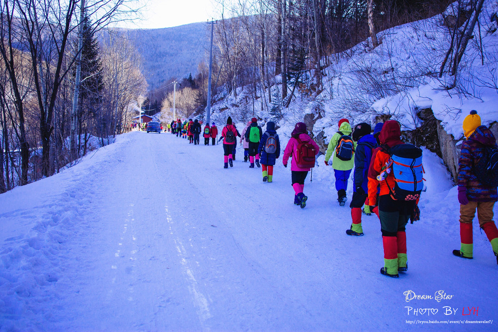 今天是最刺激的一天,行程中唯一的全天徒步,从东升林场雪谷出发,穿越羊草山,到达双峰林场雪乡国家森林公园。清晨在相思客栈吃了地道的东北早餐,粥、小咸菜、馒头、水煮蛋。穿戴整齐,即刻出发,我们头一晚就预定了马拉爬犁,坐爬犁不仅可免走五公里的平路,马拉爬犁,估计能体验的机会也不多,直接从山脚下开始登山,先人一步。