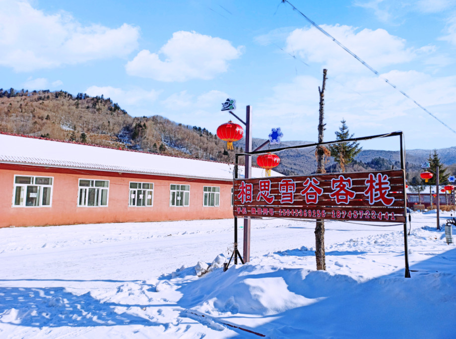 到达东升林场雪谷,下车就是客栈,不得不说,雪谷崔老板的安排恰到好处,刚一下车,抬头见一牌匾,“红豆生南国,此物最相思”这应该就是相思雪谷客栈的寓意吧。