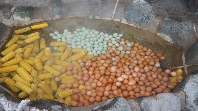 长白山北坡,是开发最早的景区,景区有温泉水煮鸡蛋和玉米,喜欢可以品尝,只是人实在太多,买到不容易。烈日当空,皑皑白雪,辉映蓝天白云,白雪之中,雾气蒸腾,温泉奔涌,冷与热,冰与火,交互映衬,美得如同童话世界,分不清真实与虚幻。
