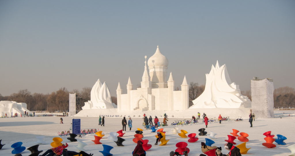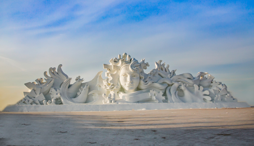 太阳岛雪博会被称为“世界上最大的雪雕艺术群”,不仅能在雪里玩个够,还能欣赏雪做得各种艺术雕塑品,宏伟又精致,在阳光下十分耀眼。而且还是泼水成冰的好地方。