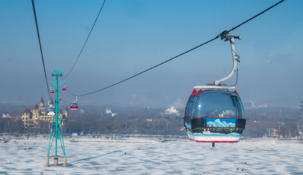 太阳岛雪博会与冰雪大世界像一对姐妹,雪博会适合白天来,冰雪大世界适合晚上玩。想要体验不同前往太阳岛的方式,可以到通江街搭乘松花江索道,下缆车后步行几分钟抵达太阳岛三号门。不仅可以俯瞰冬季松花江全貌,还能看到一个俄罗斯风情小镇。