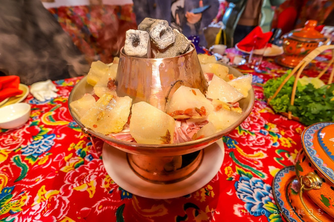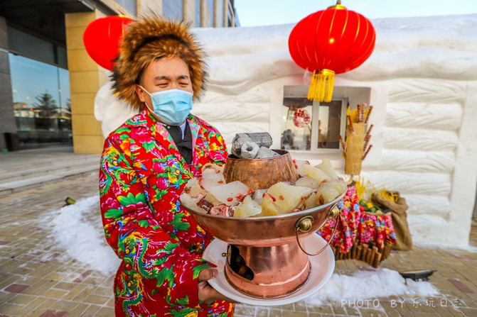 雪屋供应内蒙古特色“冰煮羊”,以晶莹剔透的冰块和高汤烹煮羊肉,味道更加鲜美。