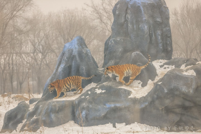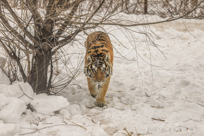 老虎的数量有很多,我们冬天来看,老虎都是厚厚的积雪上,更有感觉。
