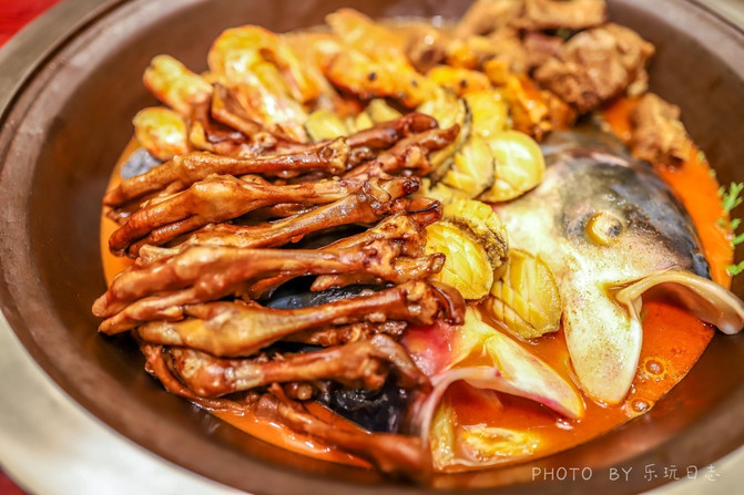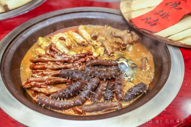 这个东北佛跳墙里面的食材确实丰富,并且像鲍鱼、鱼头,海虾这些都是挑选了个头很大的那种。