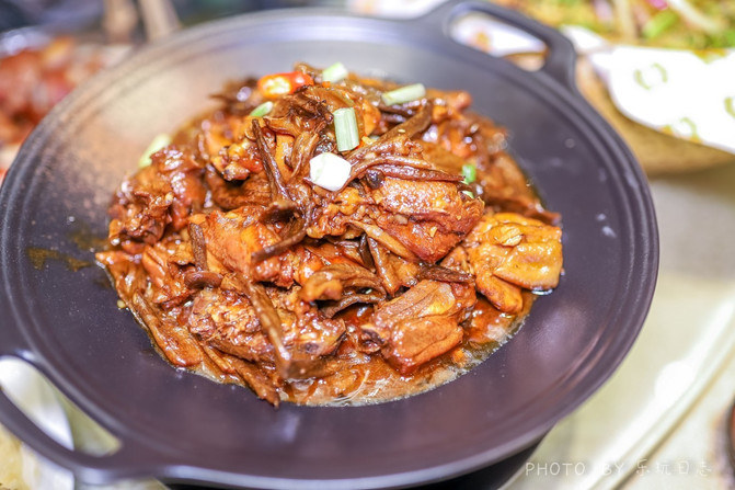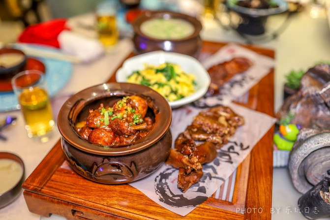 香宫铁锅炖晚宴是很有仪式感的这道菜,首先,菜肴是现场烹制的,食材由两名师傅抬进来的,进包厢前,会敲响旁边的铜锣。