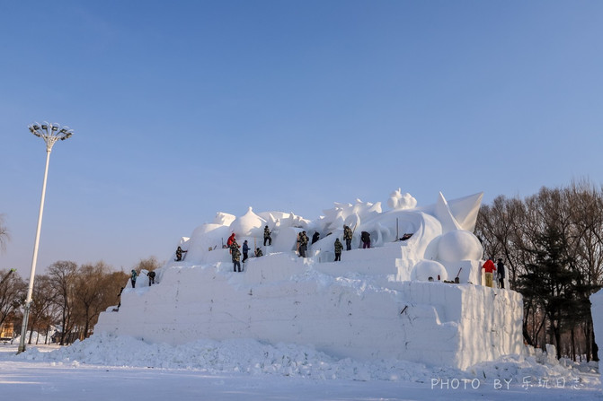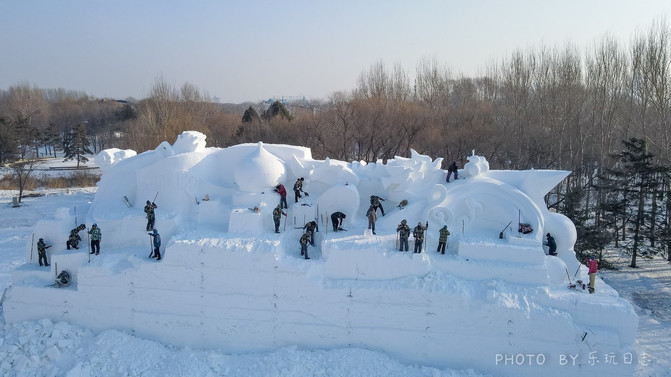 雪博会可以看,可以玩。里面的雕塑都是用雪坯堆砌,然后再请艺术家们雕刻出来的。