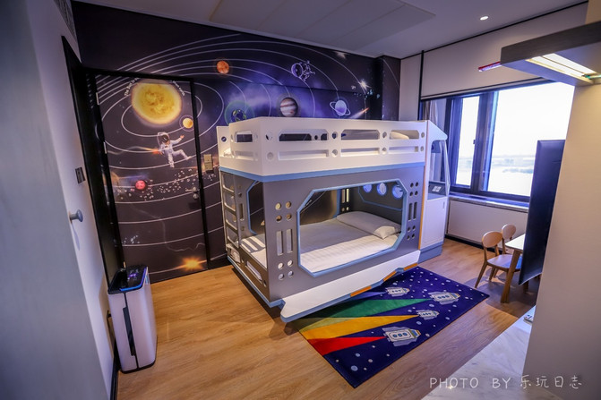 上图这个是我儿子最喜欢的太空主题,入住后,会带来沉浸式的入住体验,里面还配备了乐高积木墙等,十分有趣。